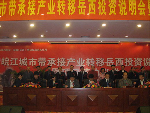 各級(jí)領(lǐng)導(dǎo)參加皖江城市帶承接產(chǎn)業(yè)轉(zhuǎn)移岳西投資說(shuō)明會(huì)暨項(xiàng)目簽約儀式