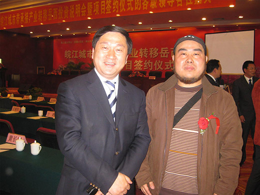 本公司總經(jīng)理査江龍舒(右)參加會(huì)議時(shí)與領(lǐng)導(dǎo)合影