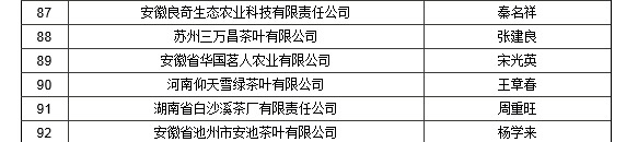 附件:2011年度中國茶葉行業(yè)百強(qiáng)企業(yè)名單